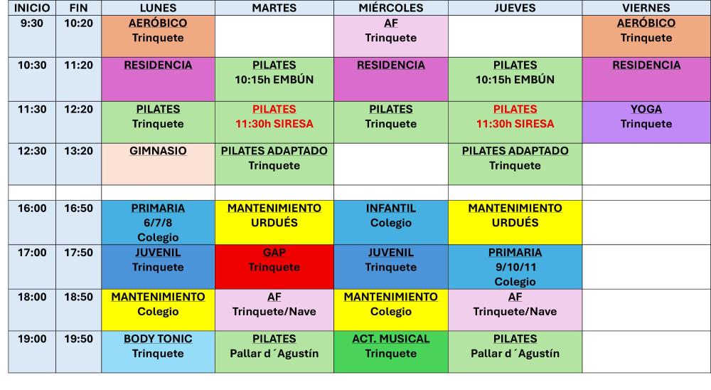 Horario actividades deportivas